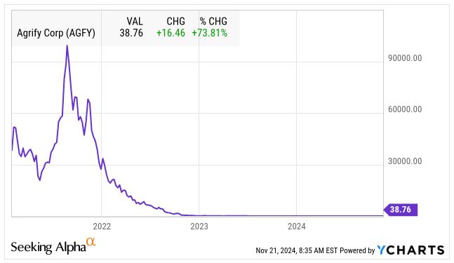 I was never a fan of Agrify (NASDAQ: AGFY), which went public in early 2021 near the top of the cannabis market at $10. Of course, with reverse-splits, that price was much higher effectively. Even with the very big rally recently, it is down a lot from the IPO price and the all-time high set later in 2021:
