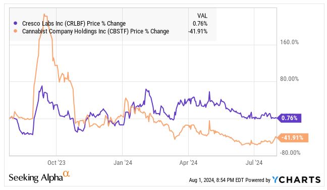 Cannabist has increased a bit since the deal with Verano was announced, but it is still down 45.7% so far in 2024. Since the deal with Cresco was terminated, it has declined almost 42% with Cresco marginally higher: