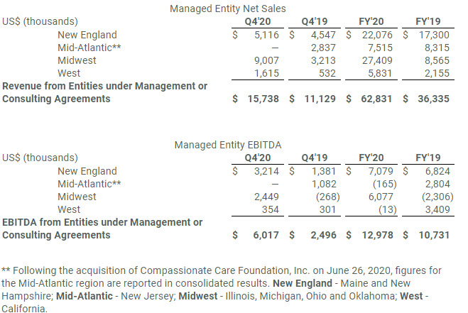 - Managed entity fourth quarter revenue* of $15.7 million and full year 2020 revenue of $62.8 million, increased 41% and 73%, respectively, compared to the same periods in 2019.