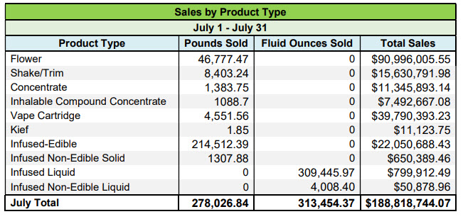 Michigan cannabis sales gained 12% compared to June with one extra day and increased 23% year-over-year to a record $209.9 million in July: