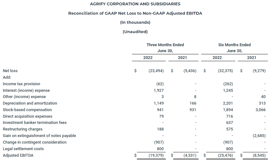 The following table presents a reconciliation of Adjusted EBITDA from the most comparable GAAP measure, net loss, for the three- and six-month periods ended June 30, 2022 and 2021, respectively: