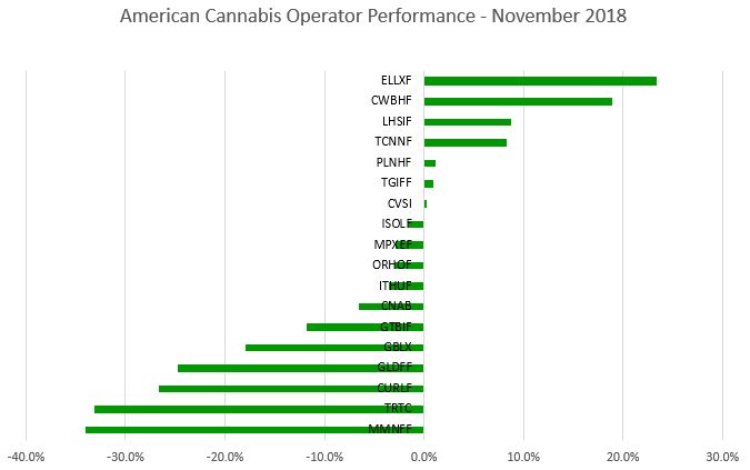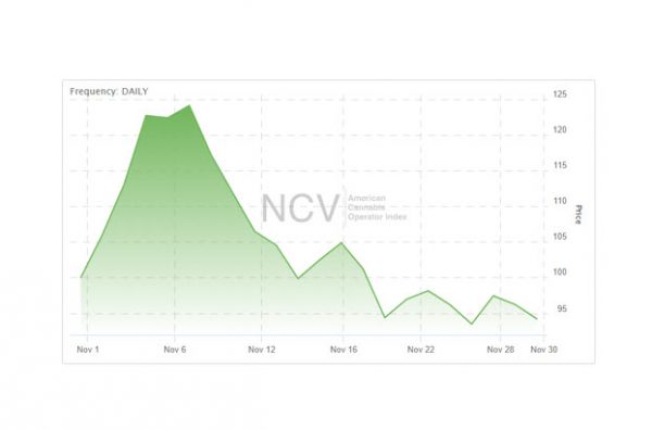 After getting off to a great start in its inaugural month, the American Cannabis Operator Index ended up declining 5.8% during November: