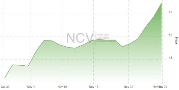 The American Cannabis Operator Index exploded higher in November, jumping 40.0% to 57.93: