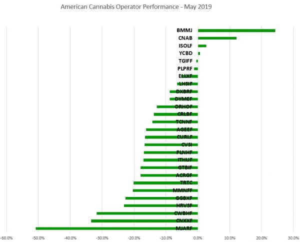 In the next monthly review, we will summarize the performance for June and discuss any additions or deletions. Be sure to bookmark the page to stay current on American cannabis operators stock price movements within the day or from day-to-day.