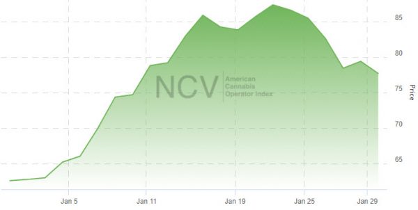 The American Cannabis Operator Index moved higher for the fourth consecutive month in January, advancing 23.3% to 77.74: