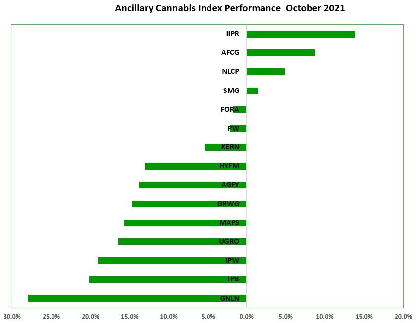 In the next monthly review, we will summarize the performance for November and discuss any additions or deletions. Be sure to bookmark the page to stay current on ancillary cannabis company stock price movements within the day or from day-to-day.