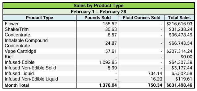 The state breaks out sales by category and provides pricing detail by category, for both medical and adult-use: