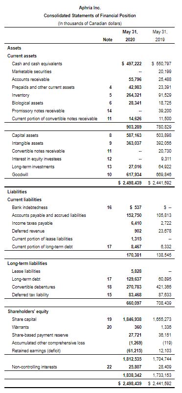 • Reduced debt and eliminated $6.7 million in annual cash interest costs by repurchasing an aggregate of approximately $127.5 million convertible senior notes at a 25% discount to their face value, using shares issued at a 31% premium to Aphria’s closing market price as of May 7, 2020.