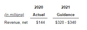 - 2021 Revenue Guidance Outlook Issued; Expects Full Year 2021 Revenue of $320-$340 Million