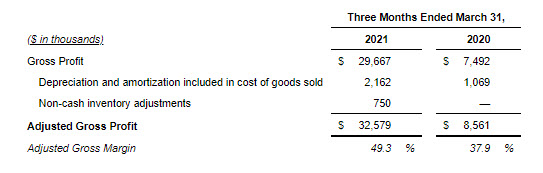 The following table presents Adjusted Gross Profit for the three months ended March 31, 2021 and 2020: