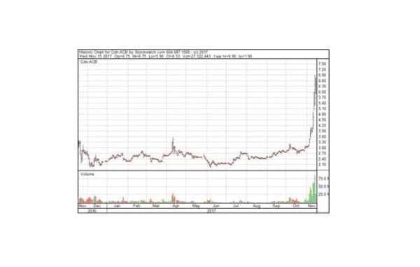 VANCOUVER, Nov. 15, 2017 /CNW/ – Aurora Cannabis Inc. – (the “Company” or “Aurora”) (TSX: ACB) (OTC: ACBFF) announced today that the Company has elected to exercise its right under the warrant indenture (the “Indenture”) governing the common share purchase warrants of the Company (the “Warrants”) issued on February 28, 2017. Pursuant to the terms of the Indenture, the Company may accelerate the expiry date of the Warrants when the volume weighted average closing price (the “VWAP”) of the common shares of the Company (the “Common Shares”) on the Toronto Stock Exchange (the “Exchange”) for 10 consecutive trading days exceeds $4.50.