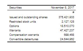 - Completed a bought deal and a private placement for gross proceeds of $75 million. Units in both placements were priced at $3.00, and consisted of one share and one common share purchase warrant (priced at $4 for a period of three years following closing).