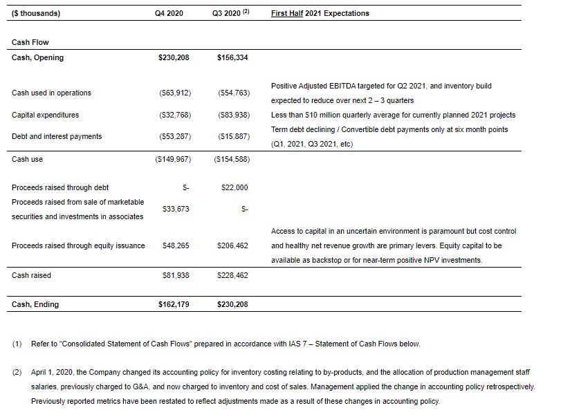 (Unless otherwise stated, comparisons are made between fiscal Q4 2020 and Q3 2020 results and are in Canadian dollars. Certain key metrics in prior quarters have been restated to reflect accounting policy changes for inventory costing and the allocation of production staff salaries. See Change in Accounting Policy section below)
