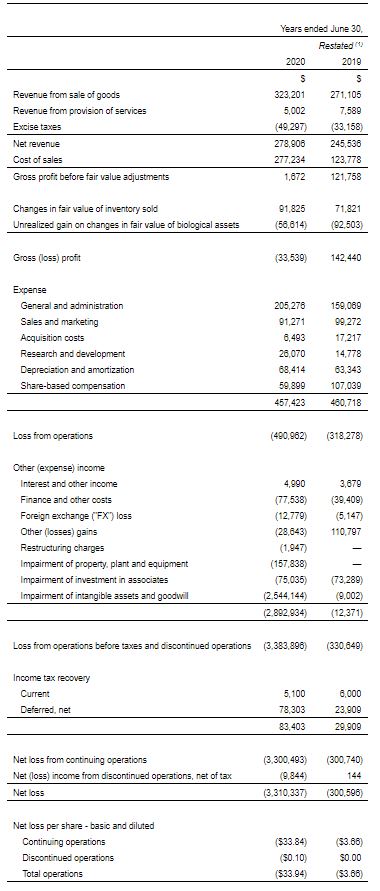 EDMONTON, AB, Sept. 22, 2020 /PRNewswire/ – Aurora Cannabis Inc. (the “Company” or “Aurora”) (NYSE | TSX: ACB), the Canadian company defining the future of cannabinoids worldwide, today announced its financial and operational results for the fourth quarter of fiscal 2020 ended June 30, 2020.