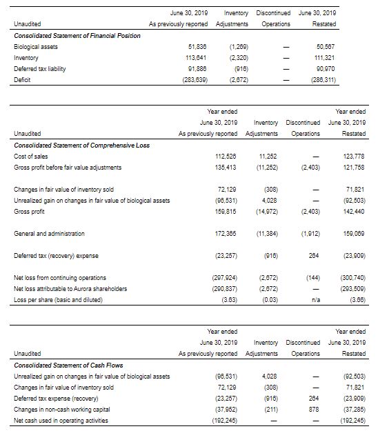 Non-GAAP measures should be considered together with other data prepared accordance with IFRS to enable investors to evaluate the Company’s operating results, underlying performance and prospects in a manner similar to Aurora’s management. Accordingly, these non-GAAP measures are intended to provide additional information and should not be considered in isolation or as a substitute for measures of performance prepared in accordance with IFRS.
