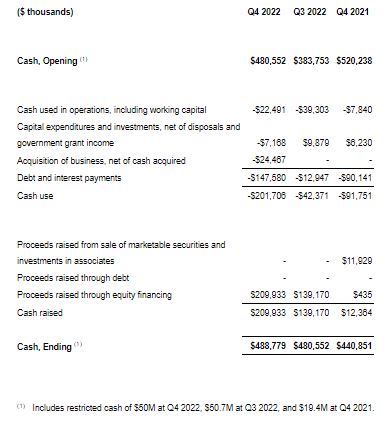 During Q4 2022, the Company completed an offering of 70,408,750 units of the Company (“June 2022 Offering”) for gross proceeds of approximately US$172.5 million. Each unit consists of one common share and one common share purchase warrant (“June 2022 Offering Warrant”) of the Company. Each June 2022 Offering Warrant entitles the holder to purchase one common share of the Company at a price of US$2.45 per warrant share until June 1, 2025. The Company issued an additional 488,639 Common Shares of the Company during Q4 2022 for gross proceeds of US$1.5 million under the ATM Program.