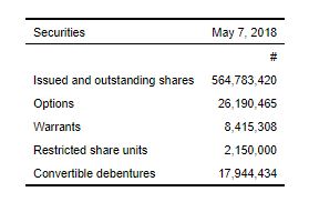 - On March 9, 2018, the Company completed a bought deal offering of 230,000 convertible debentures for gross proceeds of $230 million. The debentures have a term of two years, bear interest at 5% per annum, and are convertible at $13.05 per common share.
