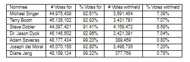 All of the matters put forward before shareholders for consideration and approval as set out in the Company’s Management Information Circular dated October 6, 2017, were approved by the requisite majority of votes cast at the Meeting. The details of the voting results for the election of directors are set out below: