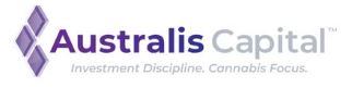 Australis Capital identifies and invests in the cannabis industry predominately in the United States, a highly regulated, fragmented, rapidly expanding and evolving industry. Investments may include and are not limited to equity, debt or other securities of both public and private companies, financings in exchange for royalties or other distribution streams, and control stake acquisitions. Australis Capital adheres to stringent investment criteria and will focus on significant near and mid-term high-quality opportunities with strong return potentials while maintaining a steadfast commitment to governance and community. Australis Capital’s Board, Management and Advisory Committee members have material experience with, and knowledge of, the cannabis space in the U.S., extensive backgrounds in highly regulated industries, adherence to stringent regulatory compliance, public company and operational expertise. In addition to the Company’s expertise and strong execution on strategic M&A, which to date includes Rthm Technologies Inc and Body and Mind Inc., Australis has developed strategic partnerships with companies such as Wagner Dimas.