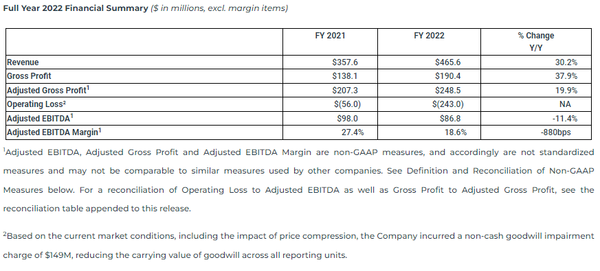 Rather, these are provided as additional information to complement those GAAP measures by providing further understanding of the results of the operations of the Company from management’s perspective. Accordingly, these measures should not be considered in isolation, nor as a substitute for analysis of the Company’s financial information reported under GAAP. Non-GAAP measures used to analyze the performance of the Company’s businesses include “Adjusted EBITDA” and “Adjusted Gross Profit.”