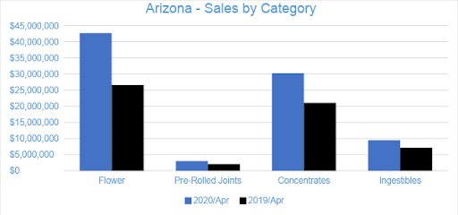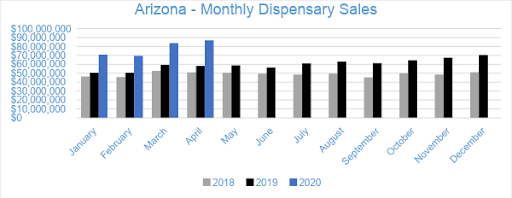 In April 2020, cannabis sales in Arizona’s medical dispensaries reached $86.7 million, growing four percent from March. Compared to the previous April, sales in Arizona grew by over 49 percent. Year-to-date through April, sales have reached $310.7 million, increasing by $92.4 million and 42 percent compared to the same period last year.