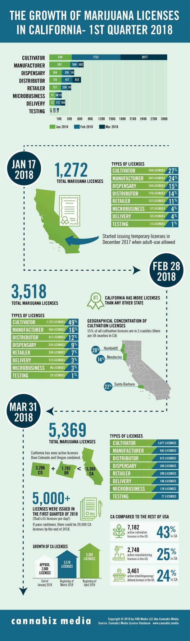 The Growth of Marijuana Licenses in California – 1st Quarter 2018: Infographic & eBook