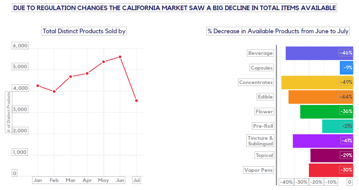 The regulation change in July lead to just over 2,000 products less being sold in July over June. This represents over a 40% decrease in the number of products on the market.
