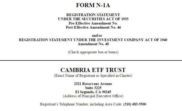 Following the success of the first cannabis-focused exchange-traded fund (ETF), the Horizons Medical Marijuana Life Sciences ETF (TSX: HMMJ) (OTC: HMLSF), which has quickly exceeded C$120mm in assets since its launch in April, Cambria ETF Trust has filed a preliminary prospectus Form N-1A with the SEC to register the Cambria Marijuana Industry ETF. The seven-person firm Cambria Investment Management, based in El Segundo, California, will serve as Investment Adviser, with Mebane Faber and Eric W. Richardson as the portfolio managers. The company currently manages nine ETFs and, in addition to the proposed cannabis ETF, has filed to introduce four others as well.