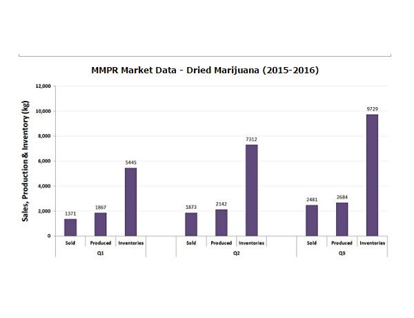 Licensed producers continue to grow more cannabis than they sell, which resulted in inventory increasing 33% during the quarter. The total size of the inventory of dried cannabis grew to 9.729mm grams (21,430 pounds)