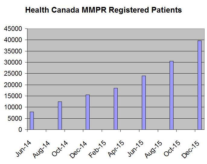 Health Canada, which oversees the Canadian medical cannabis program, MMPR, reported data for the quarter ending 12/31/15 today. The number of patients enrolled in the program grew 29.9% from the prior quarter to 39,668. This represented growth of 157% from a year ago and an acceleration from the 27.6% sequential growth reported in the prior quarter. The quarter represented the largest single patient addition since the inception of the program on 4/1/14 and was the best sequential growth since the quarter ending 9/30/14. The bottom line is that the program is seeing rapid enrollment.