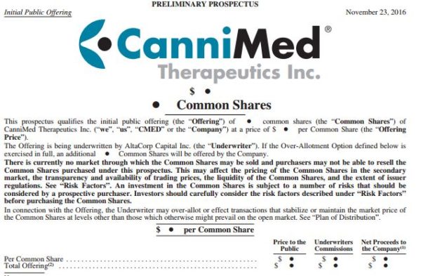 The list of Canadian licensed producers (LPs) of cannabis expecting to go public just got longer. CanniMed Therapeutics, the parent of CanniMed Ltd. and Prairie Plant Systems, issued a press release and filed a 193-page preliminary prospectus regarding its pending IPO that is being underwritten by Alberta-based AltaCorp Capital. Other Canadian LPs that have announced plans to go public, joining the existing nine publicly-traded companies, include Emblem Health, Hydropothecary, United Greeneries (spin out) and WeedMD. A B Labs last week agreed to a deal to sell 1/3 of itself to publicly traded Invictus MD Strategies (CSE: IMH).