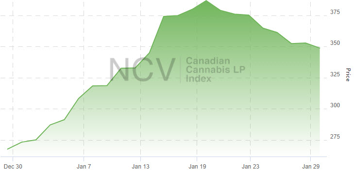 The Canadian Cannabis LP Index started 2021 strongly, advancing 26.7% to 348.75: