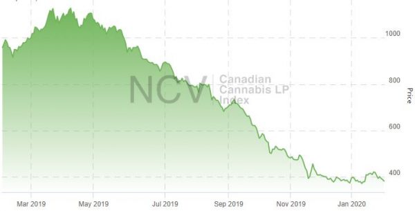 Canadian licensed producers experienced their tenth consecutive monthly decline during January, with the Canadian Cannabis LP Index falling 3.1% to 381.71: