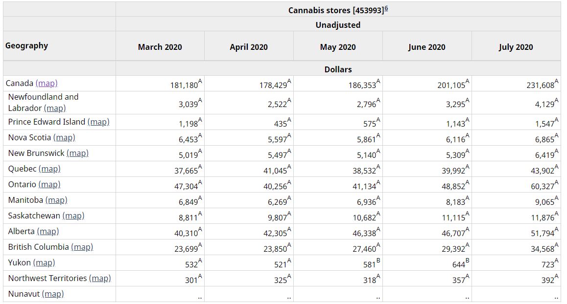 Statistics Canada released July retail sales for the country this morning, with very positive data for the cannabis sector, as overall cannabis sales grew 15% sequentially to C$231.6 million, up 116% from a year ago. The report detailed substantial growth in Ontario, which grew 23% to C$60.3 million, with the other large provinces, Alberta, British Columbia and Quebec all experiencing solid growth as well: