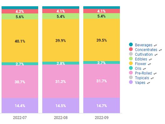 Hifyre IQ had forecast August sales of C$392.6 million based upon its data. The data analytics provider has been estimating September sales to be 4.6% lower, which would be 4.9% below the actual actual level and up 7.7% from a year ago, based upon its data. Hifyre estimates non-flower sales at 28.9% in August and 28.8% in September.