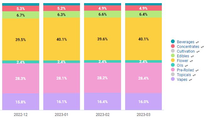 Hifyre IQ had forecast February sales at C$357.4 million based upon its data. The data analytics provider has been estimating March sales to be 12.1% higher, which would be 9.6% above the actual actual February level and up 11.5% from a year ago, based upon its data. Hifyre estimates sales outside of flower and pre-rolls at 32.2% in February and 31.5% in March.
