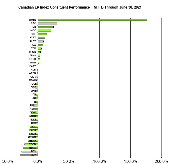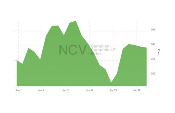 The Canadian Cannabis LP Index broke a three-month losing streak in June, increasing 1.2% to 359.27.