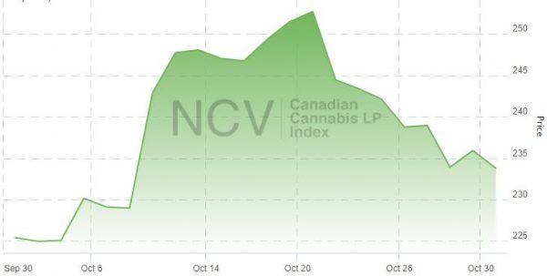 While the Canadian Cannabis LP Index lagged the broader sector, it was able to snap a two-month losing streak in October as it gained 3.7% to 233.78:
