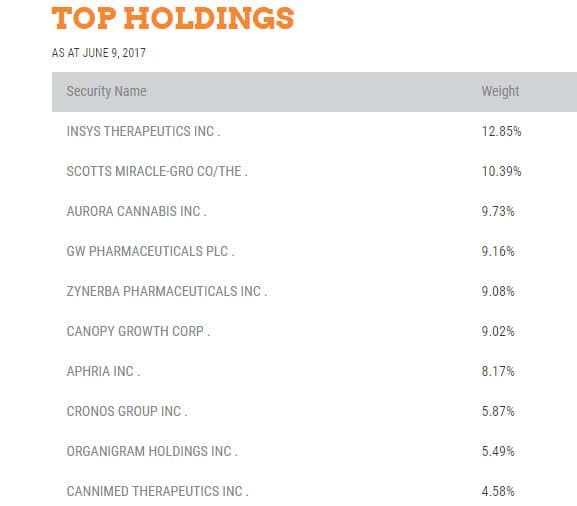 Horizons Medical Marijuana Life Sciences ETF (TSX: HMMJ) (OTC: HMLSF) added three names to its portfolio today as it scaled back several positions. The ETF had shared its top holdings in the C$104mm fund as of 6/9 on its website: