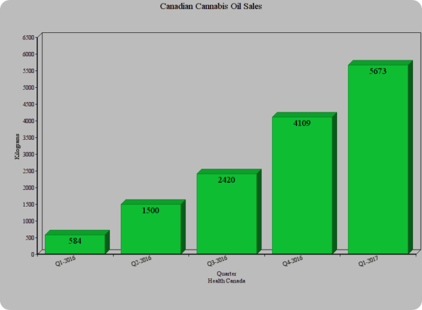 CanniMed Therapeutics (TSX: CMED) (OTC: CMMDF) sees a bright future in oils, as it is investing significantly in production capacity. In April, it announced plans to construct a new ethanol extraction facility in Saskatchewan at a cost of C$10.5mm capable of supplying 12mm 60ml bottles of oil. CMED has also exported small amounts of oil to Australia and to the Cayman Islands. The company currently offers three oils, including a high THC product, a high CBD product and a balanced product, and it intends to launch gelcaps later this year. In April, the company suggested that oils accounted for 46% of March Sales, and the company reported that for the full quarter ending in April they amounted to almost half of sales.