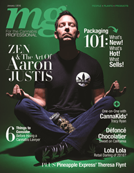 Cannabis activist Aaron Justis appears on mg’s January cover. Justis got involved in the industry in 1997 and since then has fervently advocated policy reform. He currently serves as president of Buds & Roses, a medical dispensary in Los Angeles, and sits on boards of directors for several organizations including the National Cannabis Industry Association.