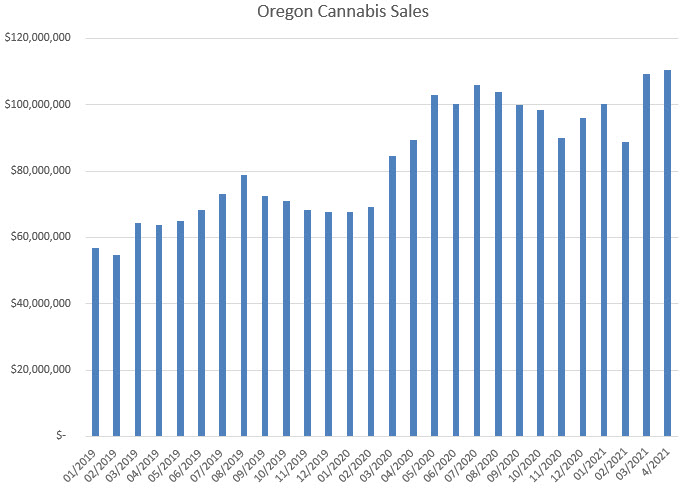 Sales soared 42% in April to $356.8 million, growth that was by far the strongest since the pandemic. It may be slightly overstated due to a dip in April a year ago from March. Flower grew in line with overall sales as did ingestibles, while concentrates were slower at 32% and pre-rolls were much stronger at 93%. The strength in pre-rolls is partially related to the dip a year ago when the pandemic was in its early days.