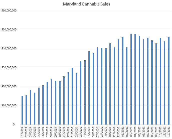 The relatively small Maryland market continues to struggle to grow, with sales of $46.4 million increasing just 3% from a year ago and 6% sequentially. Flower increased 6%, trailing only ingestibles, which increased 16%. Concentrates expanded by 4%, with pre-rolls growing 5%.