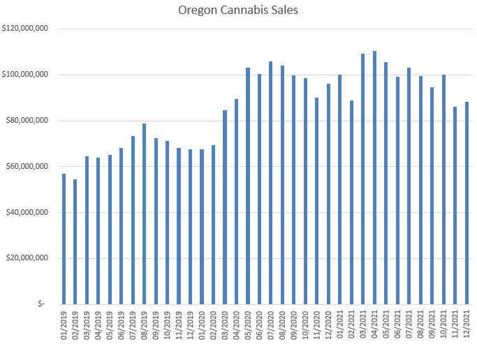 The annual rate of decline expanded in Oregon to 8% as sales increased 3% from November to $88.3 million. Flower declined 16% compared to 14% in November, with pre-rolls expanding by 4%. Ingestibles grew 2%, while concentrates fell 4% compared to a year ago.