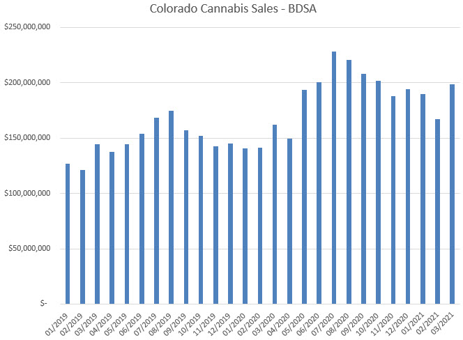 BDSA provides coverage for Arizona, California, Colorado, Nevada and Oregon. In March, growth ranged from -3% in Arizona (medical-only) to 50% in Nevada compared to a year ago.
