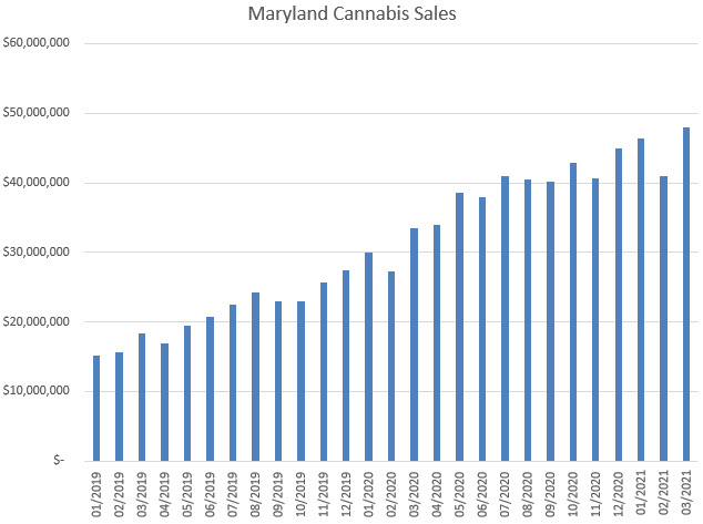 Maryland was the only state to see annual growth slow, with sales of $48 million, it’s highest month to date, expanding 17% sequentially and 43% compared to a year ago. In February, the state had seen sales grow by 50%. Flower grew 53%, while pre-rolls grew 30%. Concentrates increased 45%, and ingestibles grew by 49%.