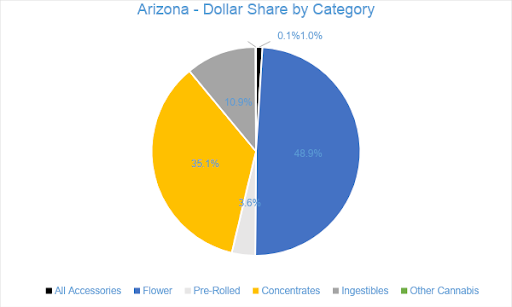 Concentrate sales accounted for about 35 percent of overall revenues with sales totaling $32.6 million in May, growing by eight percent from the trailing month. Vape products, the largest segment of the Concentrates category, generated $20.3 million in sales, accounting for 62 percent of the Arizona Concentrates market and 22 percent of sales across all categories. Compared to May 2019, sales of Dabbable Concentrates grew by 86 percent, while Vape sales grew by 42 percent.