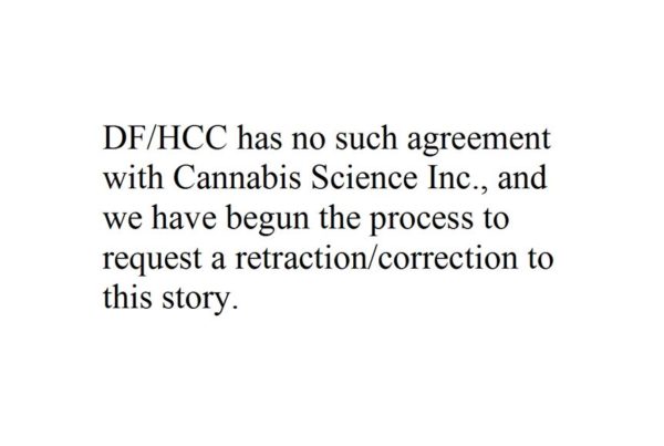 First, to aid in the discussion that may follow, I wanted to draw attention to the difference between Dana-Farber Cancer Institute (DFCI), and Dana-Farber/Harvard Cancer Center (DF/HCC). The latter is a consortium made up of 7 different institutions in Boston, one of which being DFCI. With that said, DF/HCC has no such agreement with Cannabis Science Inc., and we have begun the process to request a retraction/correction to this story. Since I only represent DF/HCC, not DFCI, I cannot know if such an agreement exists between DFCI and Cannabis Science, Inc. I hope this answers your question.