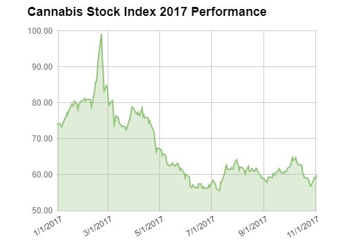 The announcement last Sunday that Constellation Brands (NYSE: STZ) was acquiring a 9.9% stake in Canopy Growth (TSX: WEED) (OTC: TWMJF) for C$245mm helped end a streak of nine consecutive declines in the Cannabis Stock Index, which rallied from 56.85 to 60.03 this week, gaining 5.6%. The index is still down 19.0% in 2017 after a 88.8% gain in 2016.