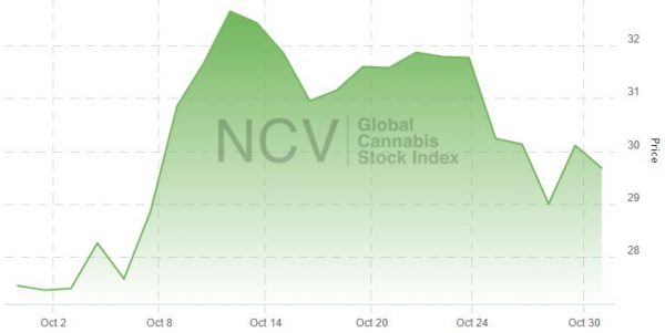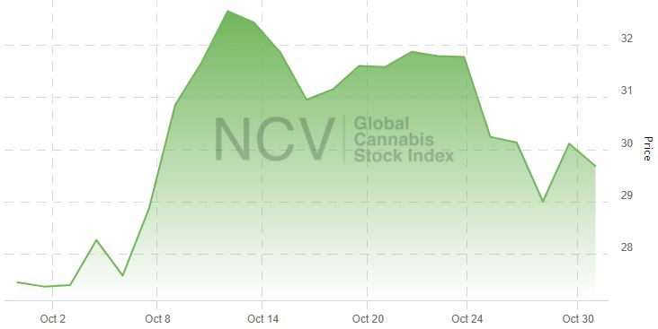 After a sharp decline in September that left the index down 7% in Q3, the Global Cannabis Stock Index held on to early-in-the month gains, increasing 8.1% in September to 29.68: